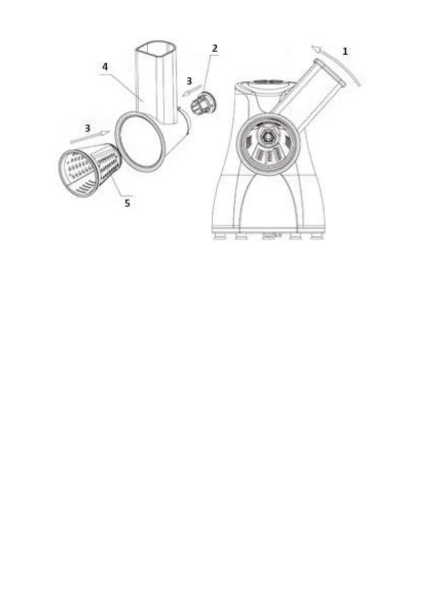 Zum Zerkleinern und Reiben werden die Lebensmittel in den Einlasskanal eingeführt und