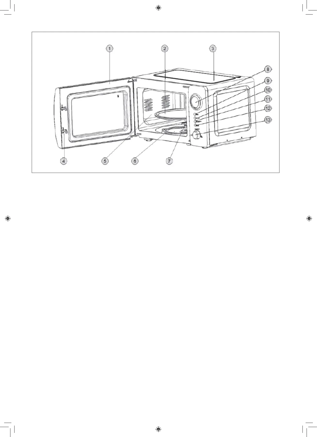 Avant utilisation, vériez que le plateau tournant en verre (2) est