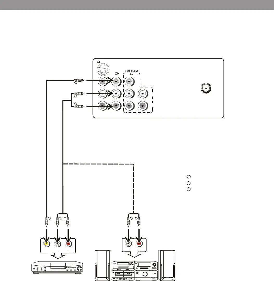 You can connect an audio system to the AV output terminals on the TV set rear to enjoy a high-quality sound from the