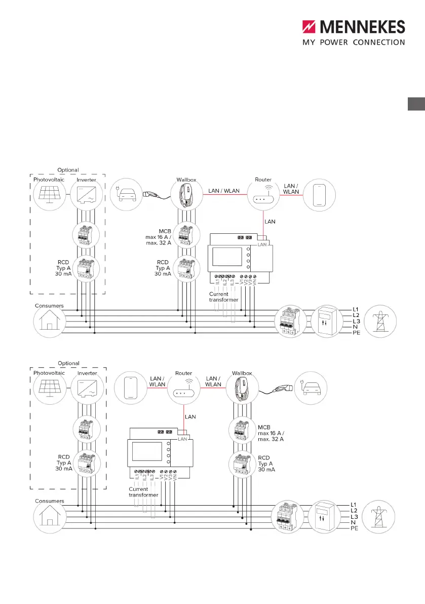 oder dass der Gesamtverbrauch (externe Verbraucher und die Ladestation) gemessen wird. In den fol-