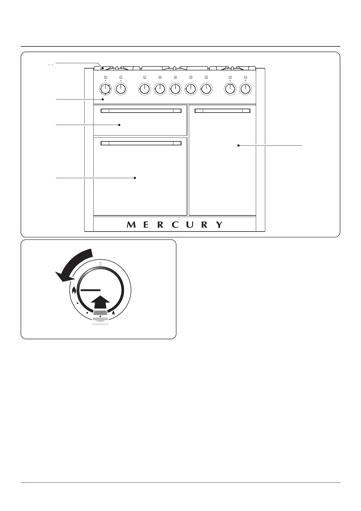To light a burner, push in the selected burner control knob