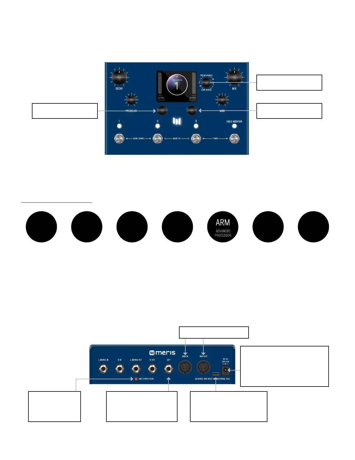 The other four knobs are your top level controls for DECAY, PREDELAY, MOD, and MIX.