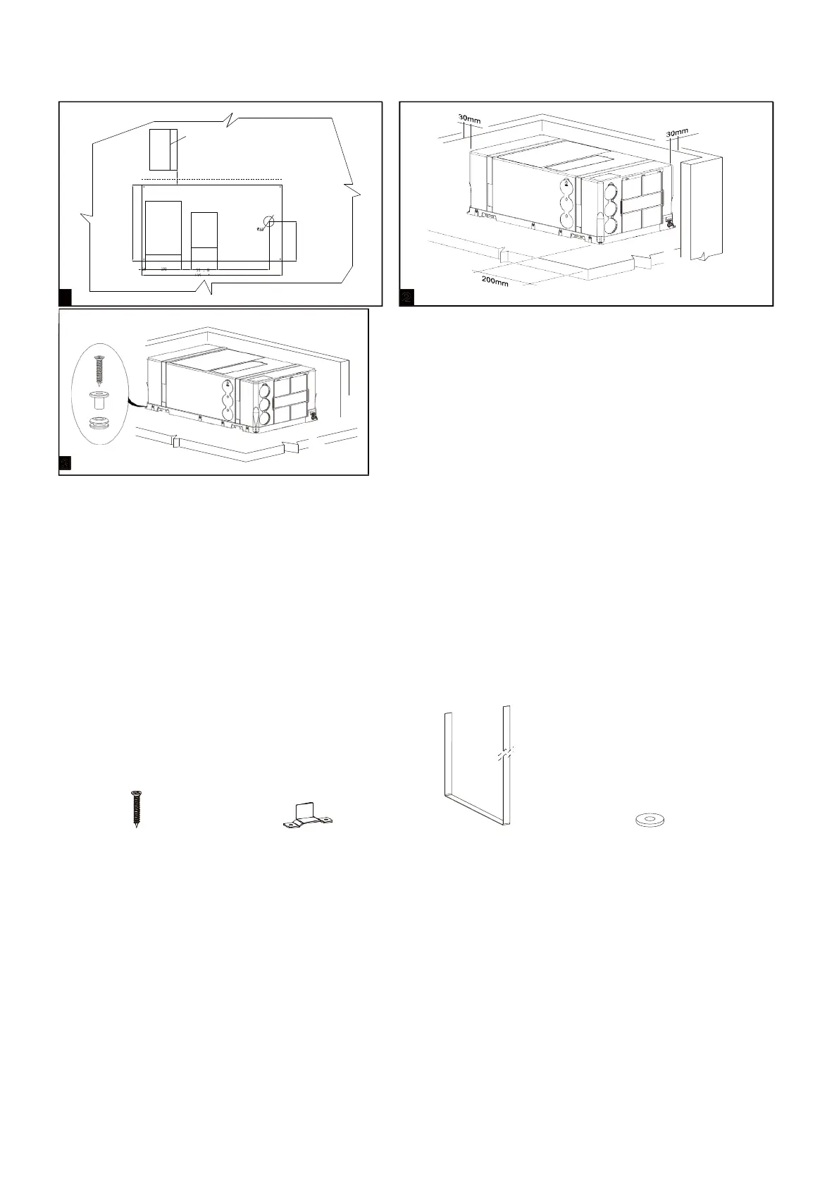Hold en afstand på mindst 30 mm mellem maskinen og eventuelle tilstødende vægge. Brug det medfølgende installationssæt til at