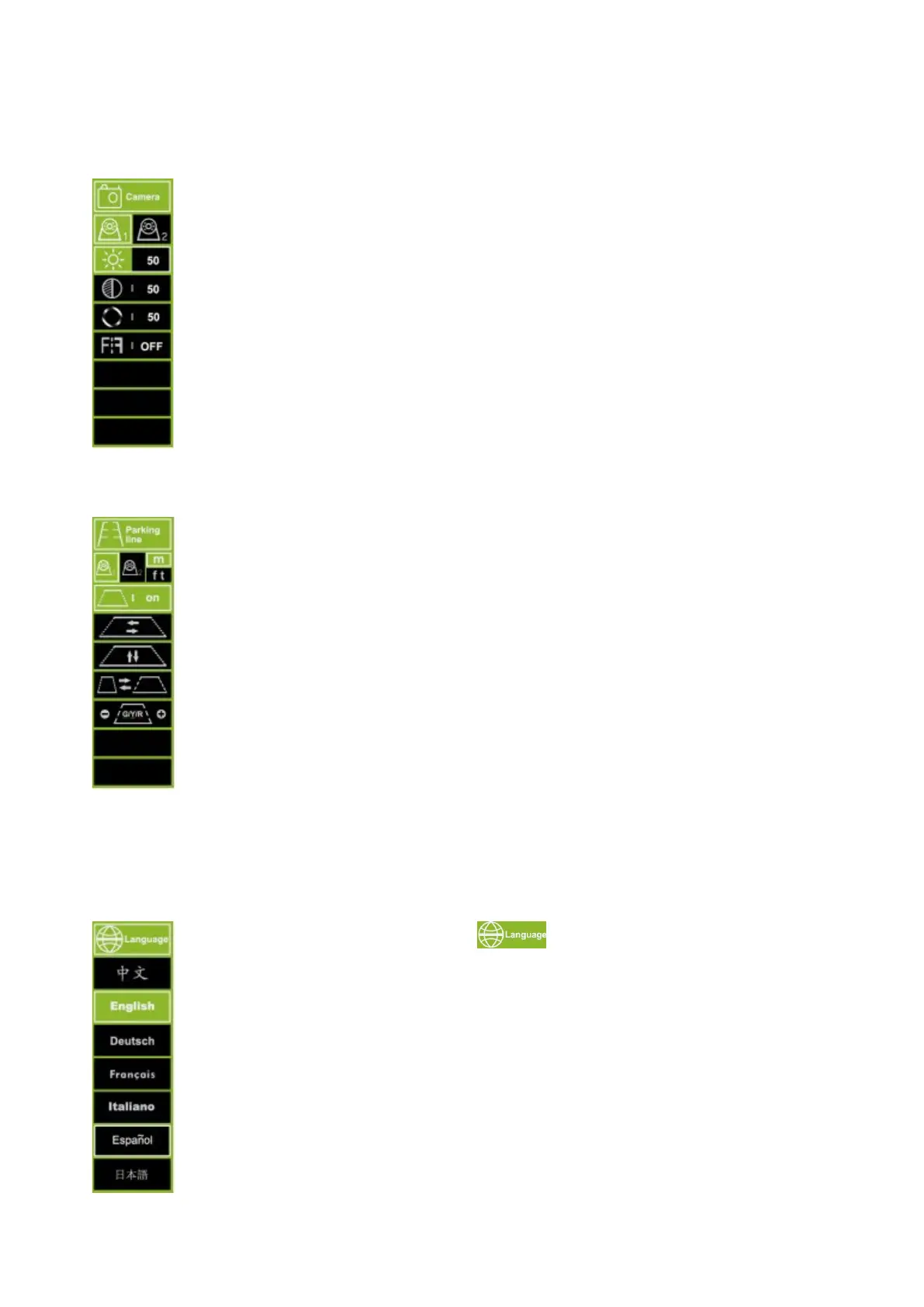 Parkeringslinje, tryk på MENU-knappen for at bekræfte og åbne menuen til indstilling af