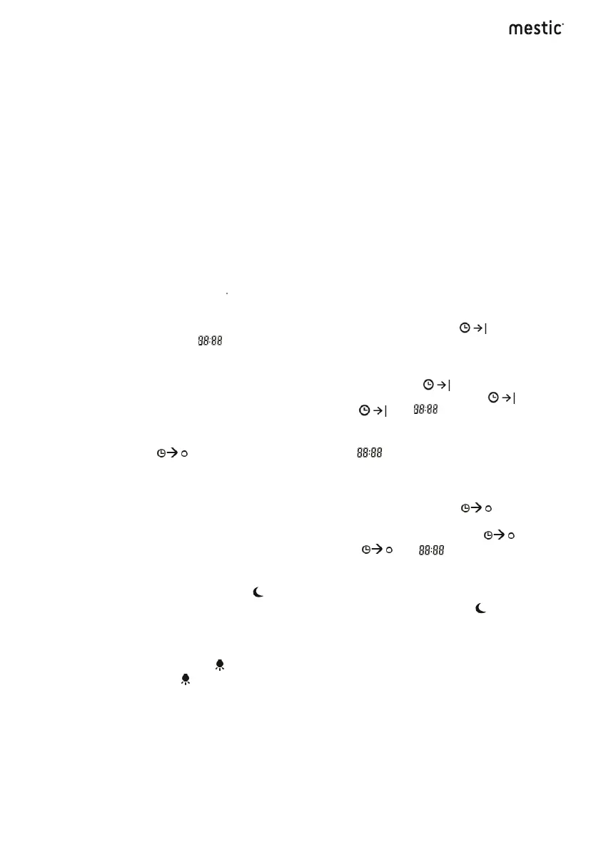 Druk 5 seconden op de “TIJD” knop om de nieuwe instelling te bevesgen. Het symbool “ ” stopt met knipperen.