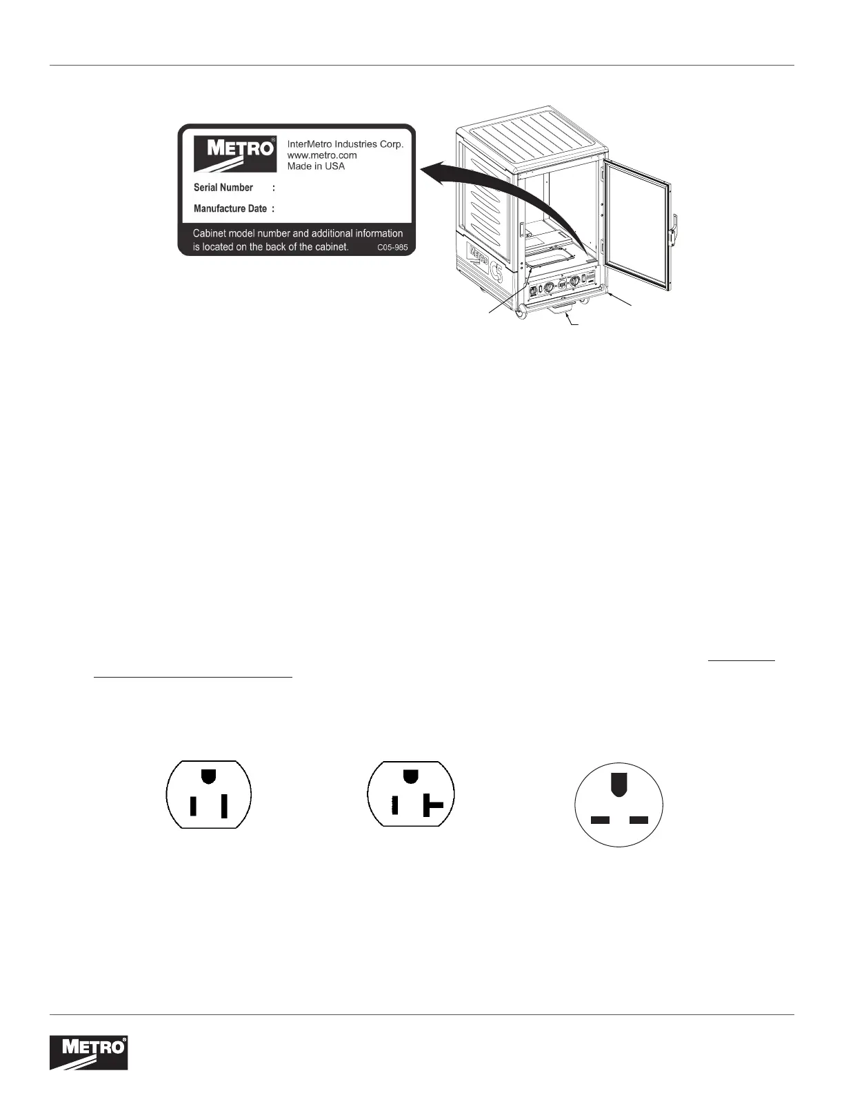 • Cabinets rated at 120V 1440W must be plugged into either a 15 amp or 20 amp 125VAC receptacle and used