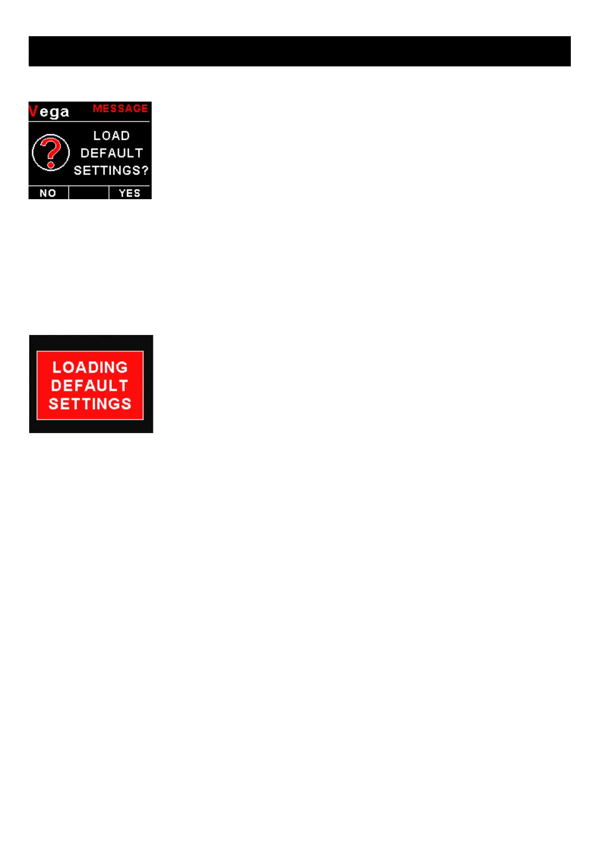 programmed factory default settings. The following screen will be displayed: