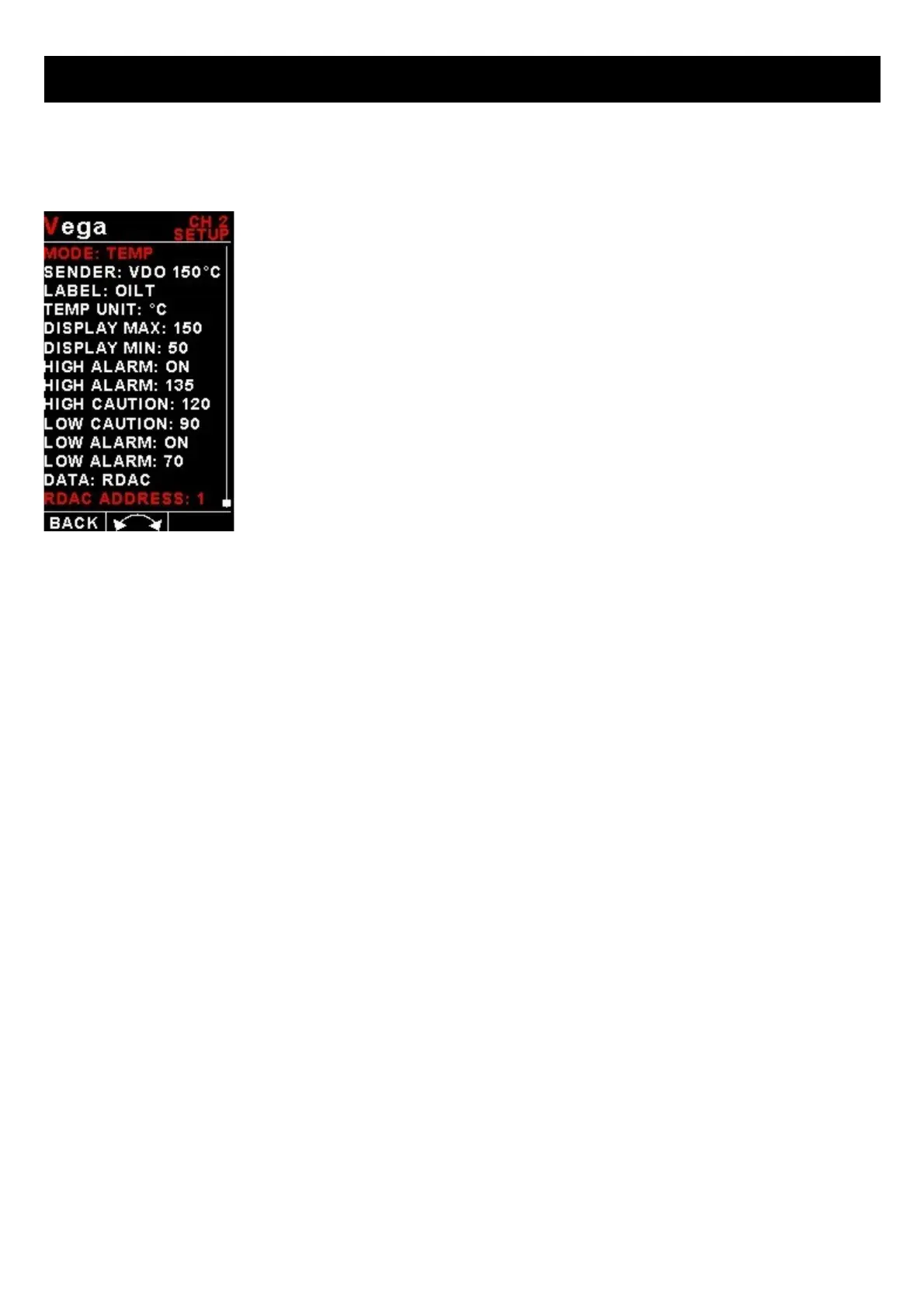 Select what type of sender you are using. Select “VDO 120” for a VDO 120 degree NTC sender, Select “VDO 150” for a