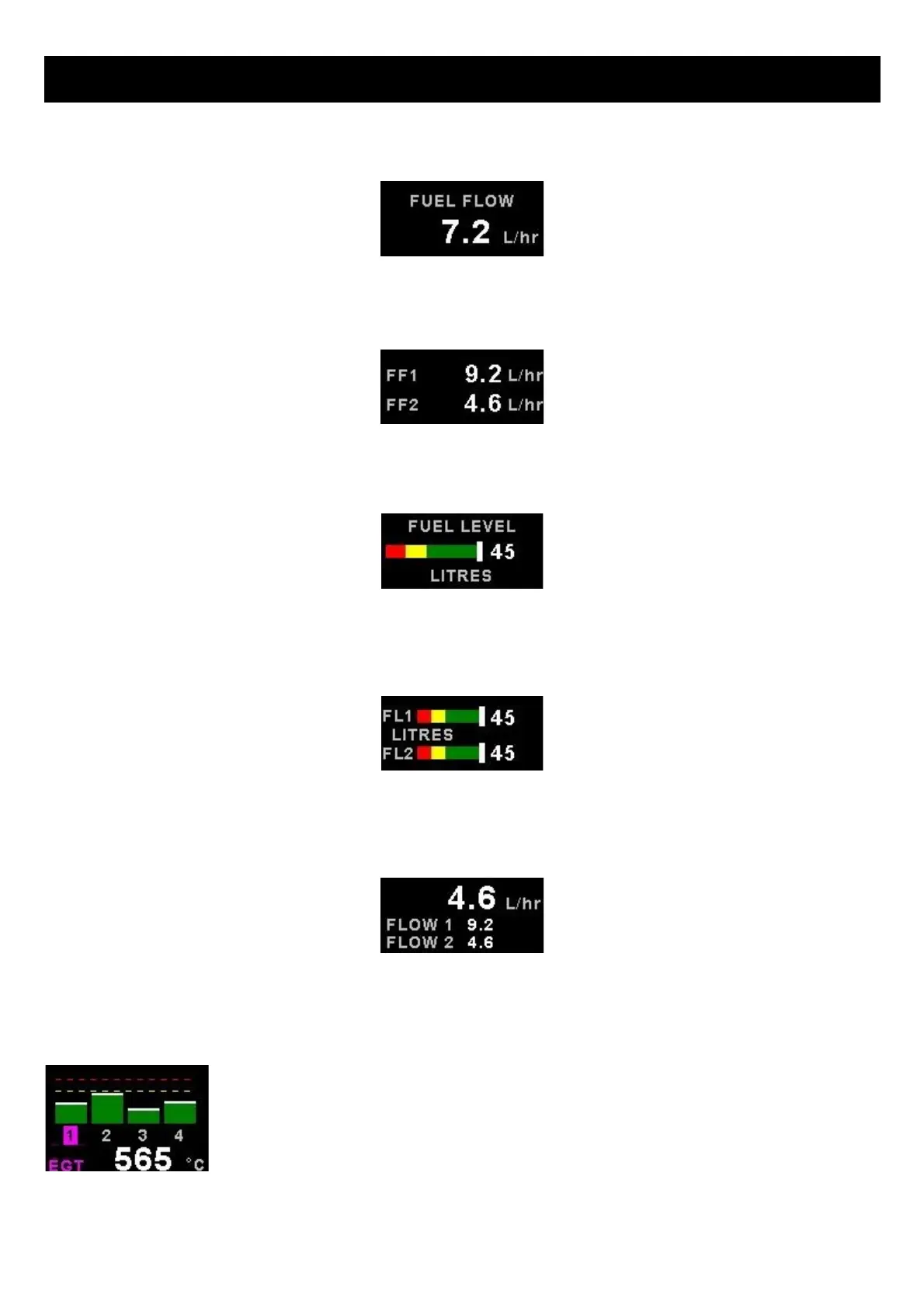 This mode is displayed if either fuel level 1 or fuel level 2 is selected. Both fuel flow senders are disabled.