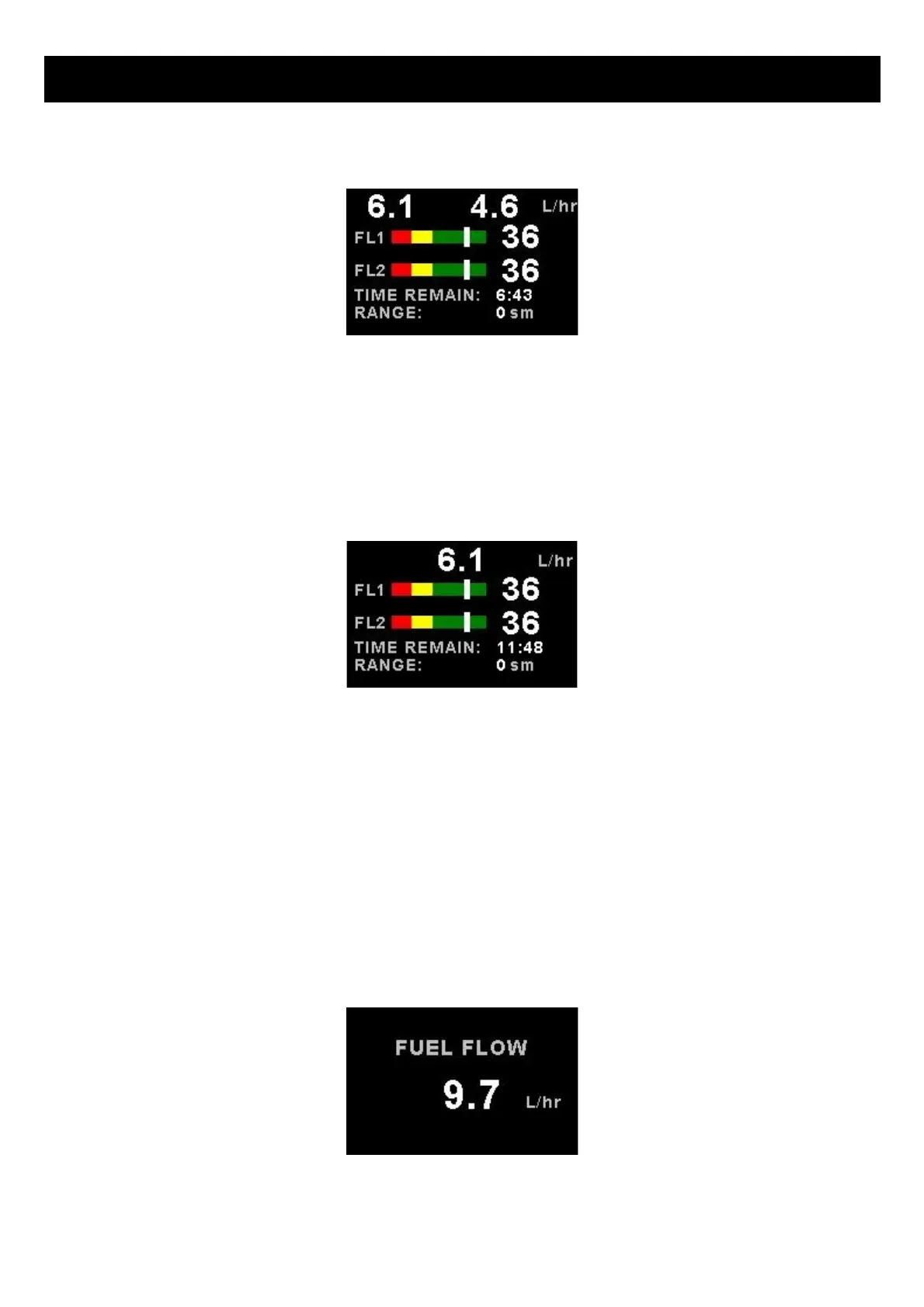This mode is displayed if either fuel flow 1 or fuel flow 2 is selected and no fuel level senders are selected.