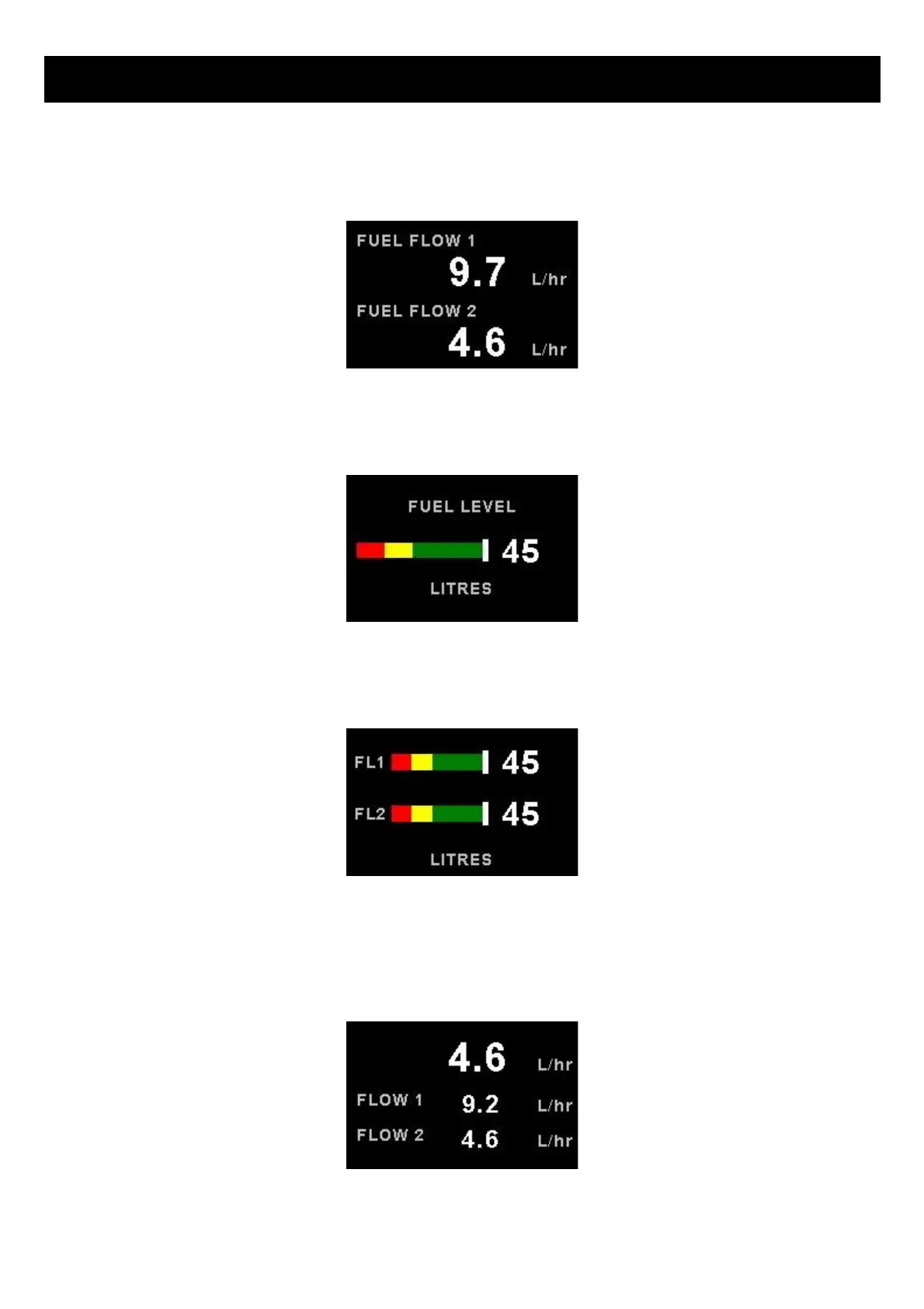 This mode is displayed if either fuel level 1 or fuel level 2 is selected. Both fuel flow senders are disabled.