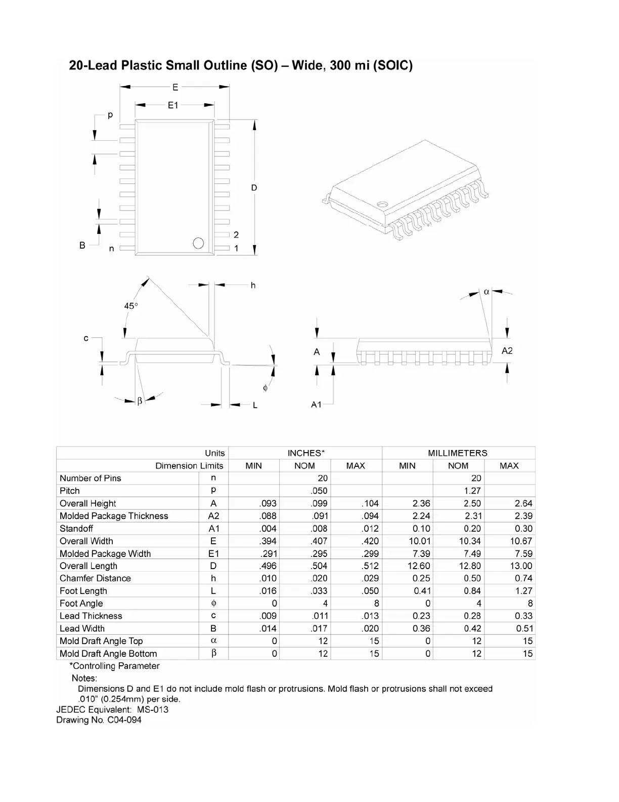 TSHARC-12S 20 Pin SOIC Mechanical Specification