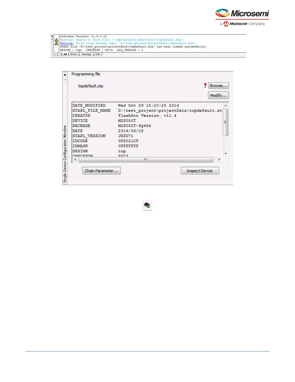 Load the STAPL file in chain mode by adding a Microsemi device in the chain.