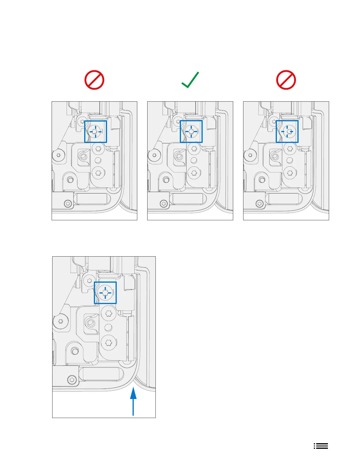 c. Secure hinge – Turn all 6 hinge screws another 90 degrees (1/4 turn) or until fully fastened.