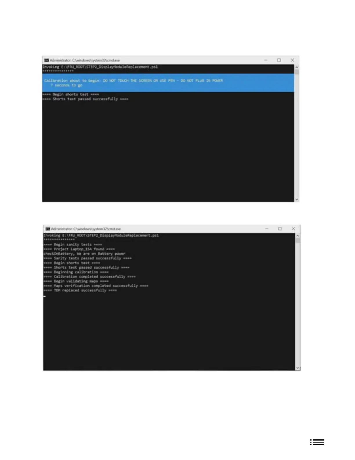 STEP_2 Screen 3: Tool prompts operator that calibration is about to commence with reminders that screen should