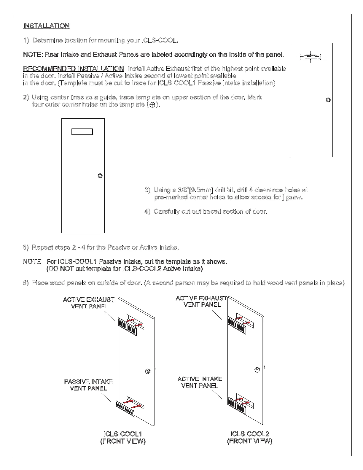 in the door. (Template must be cut to trace for ICLS-COOL1 Passive Intake installation)
