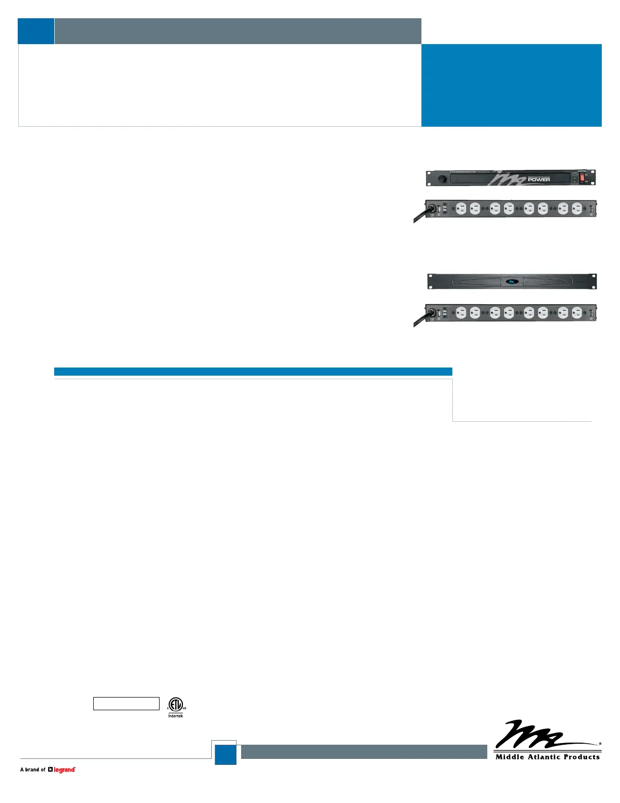 Rackmount light with power distribution shall be Middle Atlantic Products model # PDLT-815RVA. Rackmount power shall have