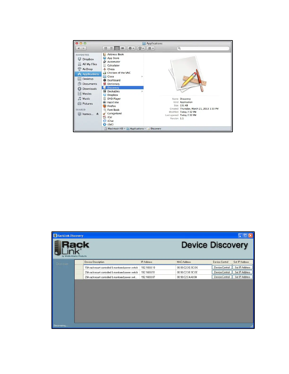 9. Click Applications in the Finder to locate the RackLink Discovery application.