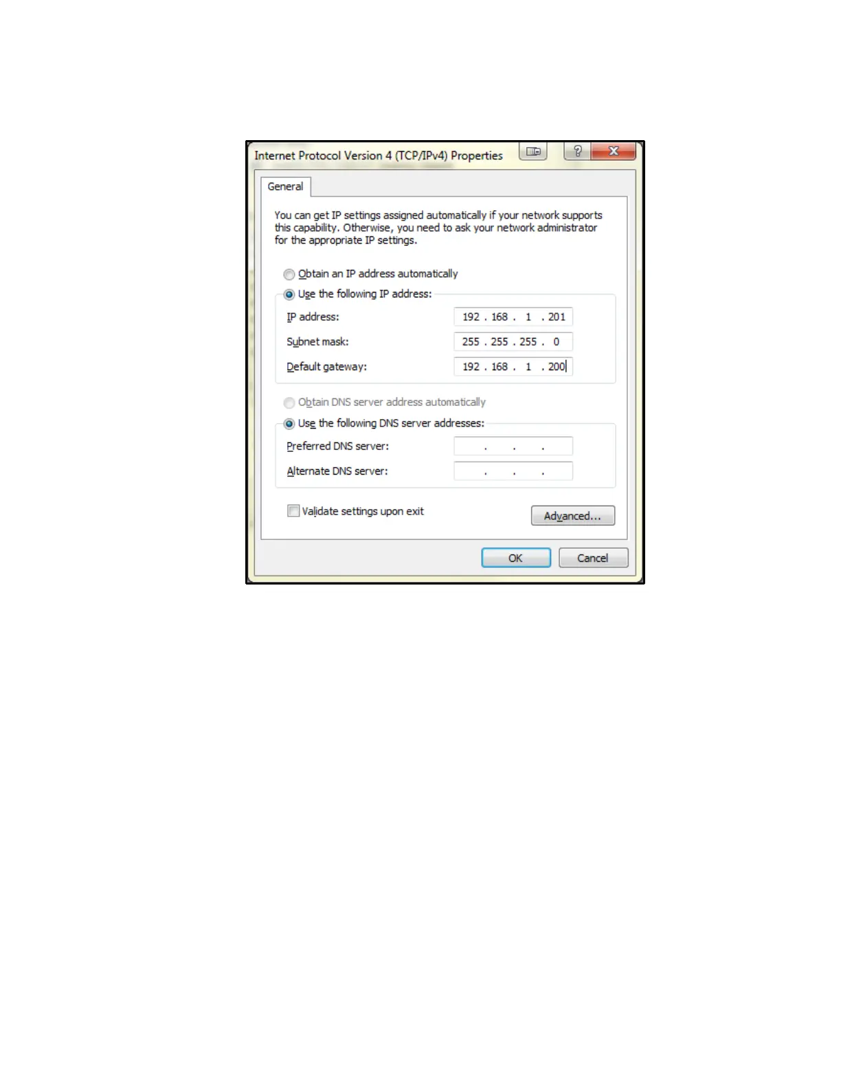 First configure TCP/IP on your PC, and then configure TCP/IP on your RackLink device using the