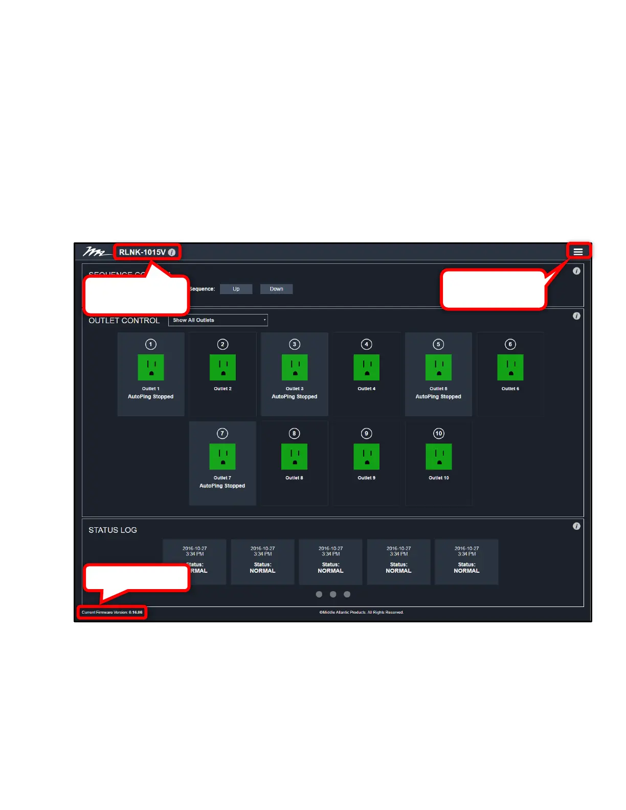 Every screen of the browser-based interface includes your connected RackLink device’s name