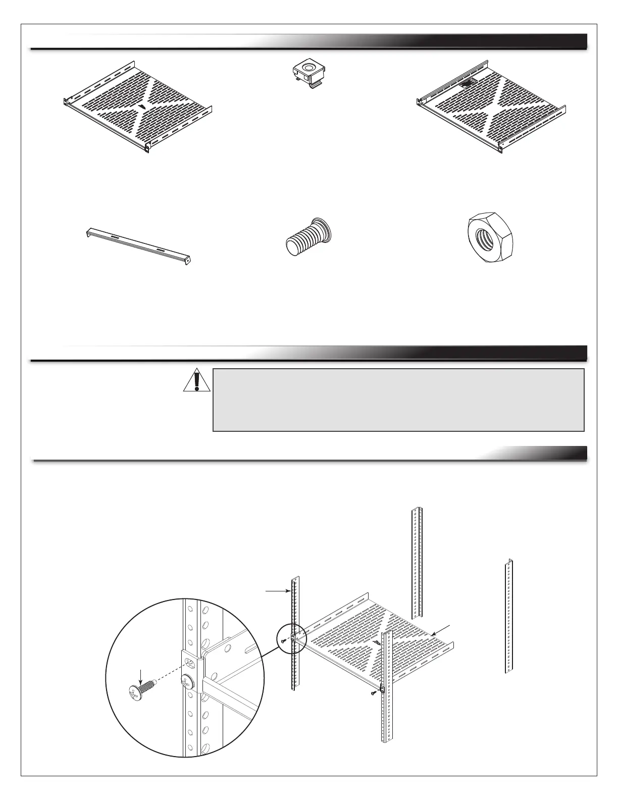 1. Use a #2 Phillips screwdriver and (4x) rack screws (not provided) to attach the inner shelf (A) to your