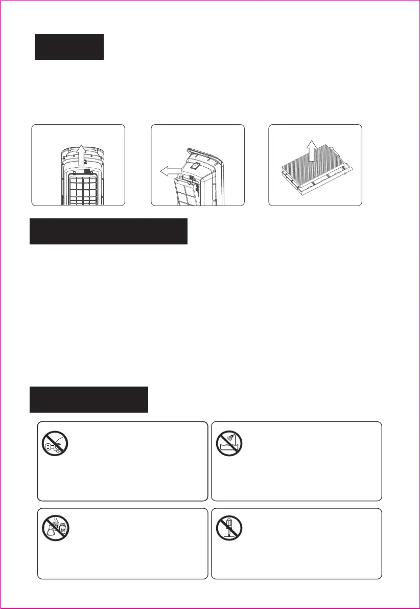 Per fig.2 fig.3 fig.4 and fig.5: Unplug the unit for two minutes, take out filter,