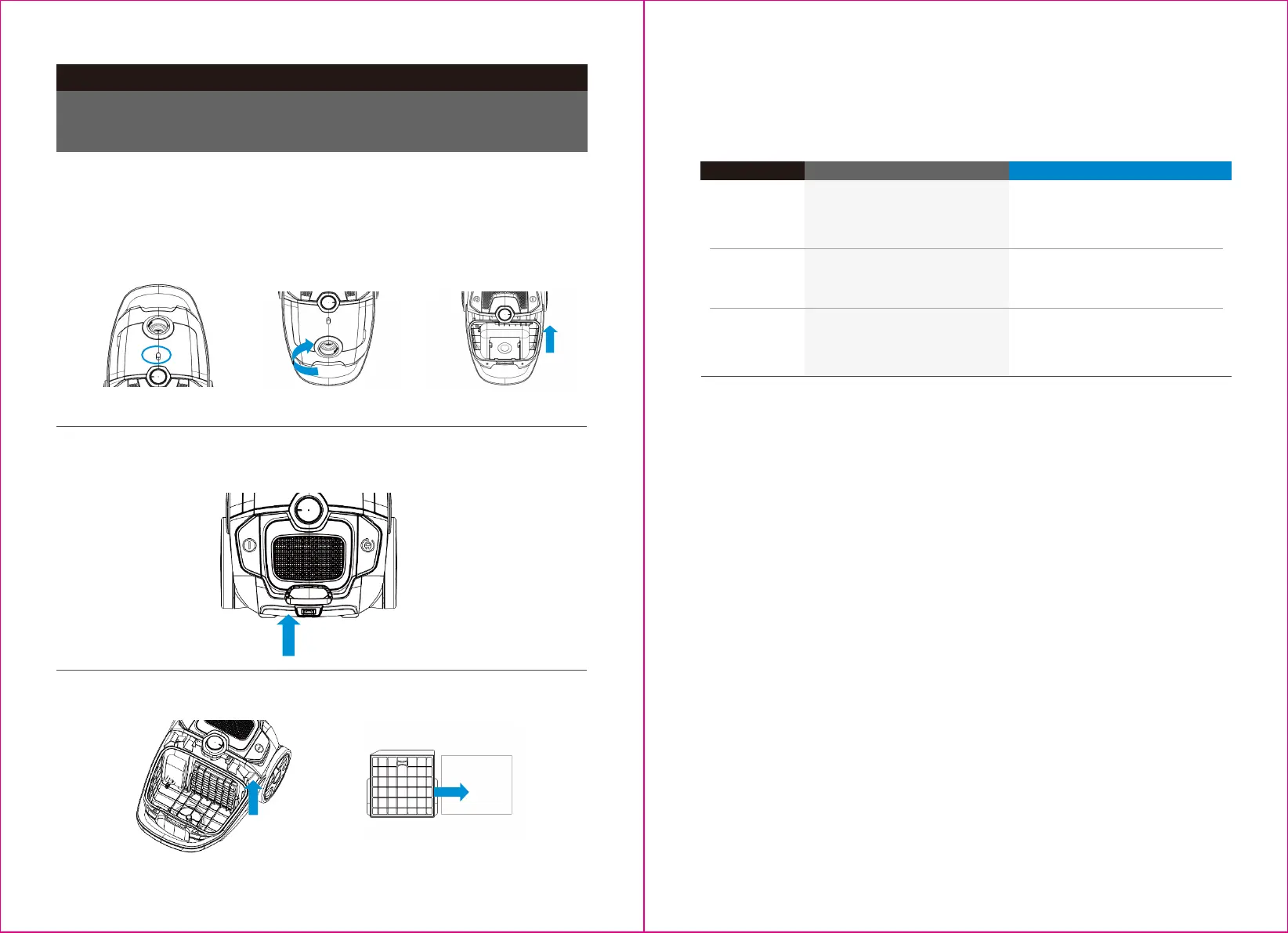 vrecko za nové. Otvorte predný kryt zaklapnutím. Vyberte vrecko a potom vyberte plné vrecko