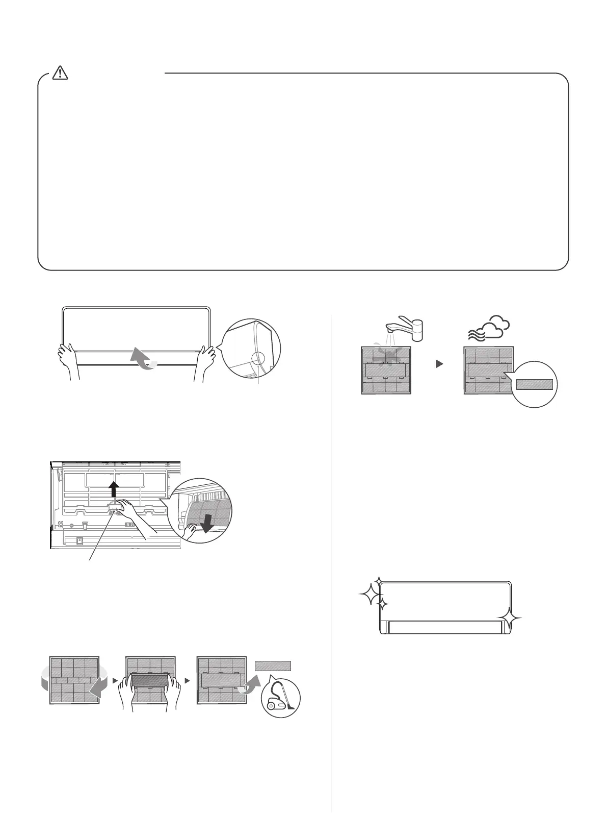 • Die Kühlleistung Ihres Geräts und Ihre Gesundheit wären durch einen verstopften AC.