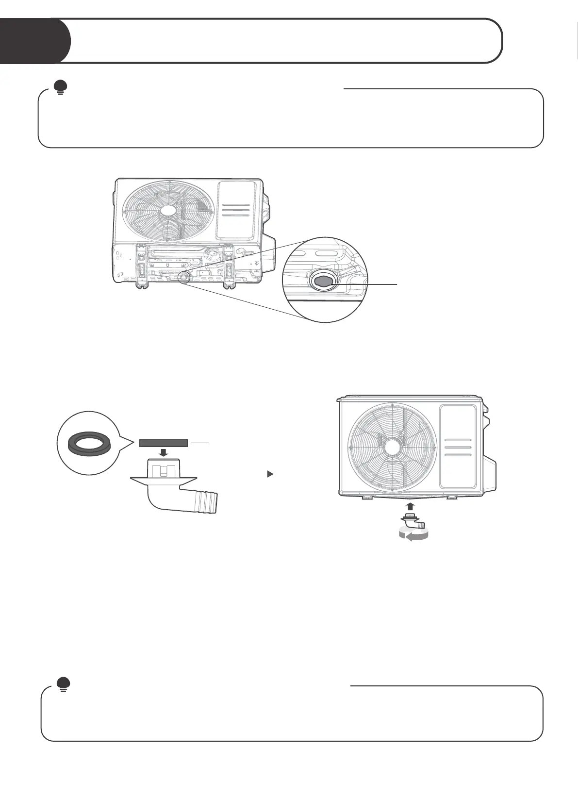 Bevor Sie die Außeneinheit befestigen, müssen Sie den Abflussanschluss unten am Gerät