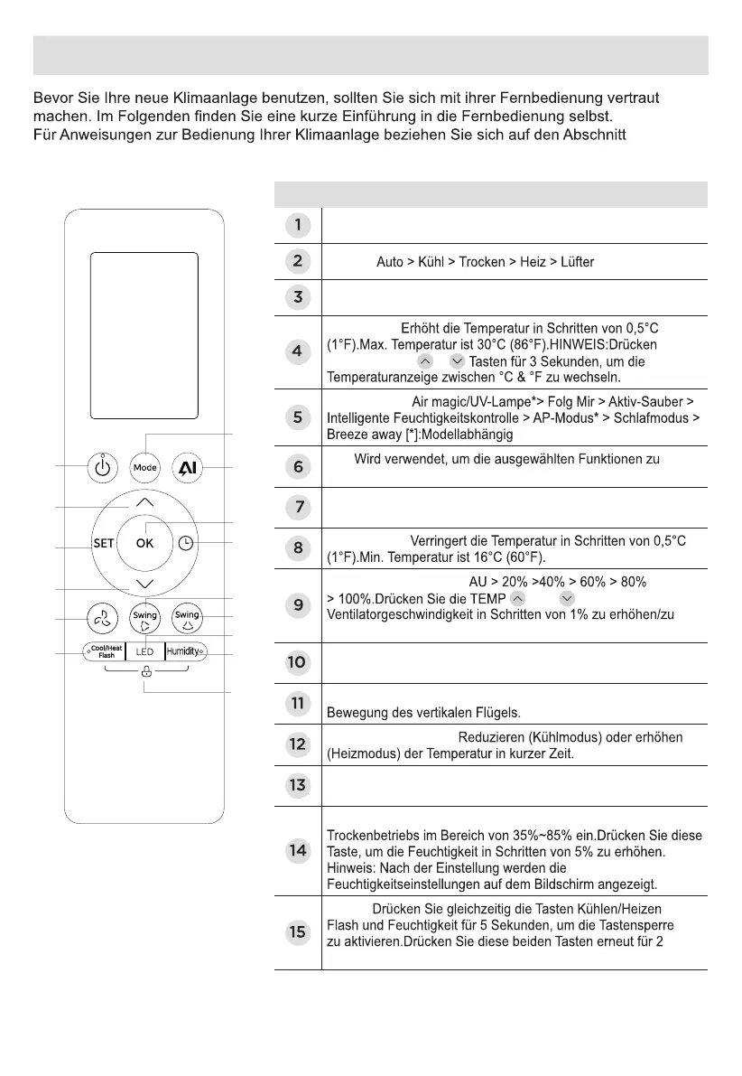 LED: Schaltet das LED-Display & das Klimaanlagen-Signal ein