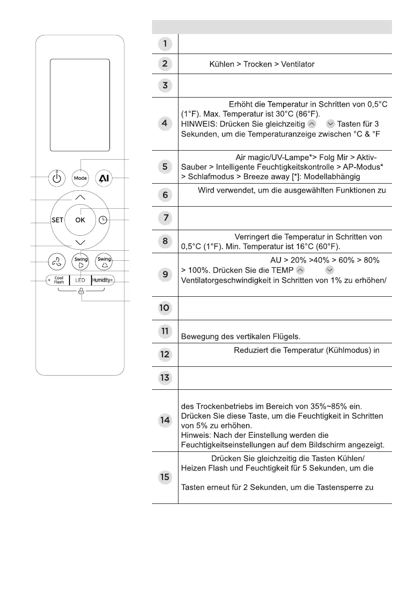 LED: Schaltet das LED-Display & das Klimaanlagen-