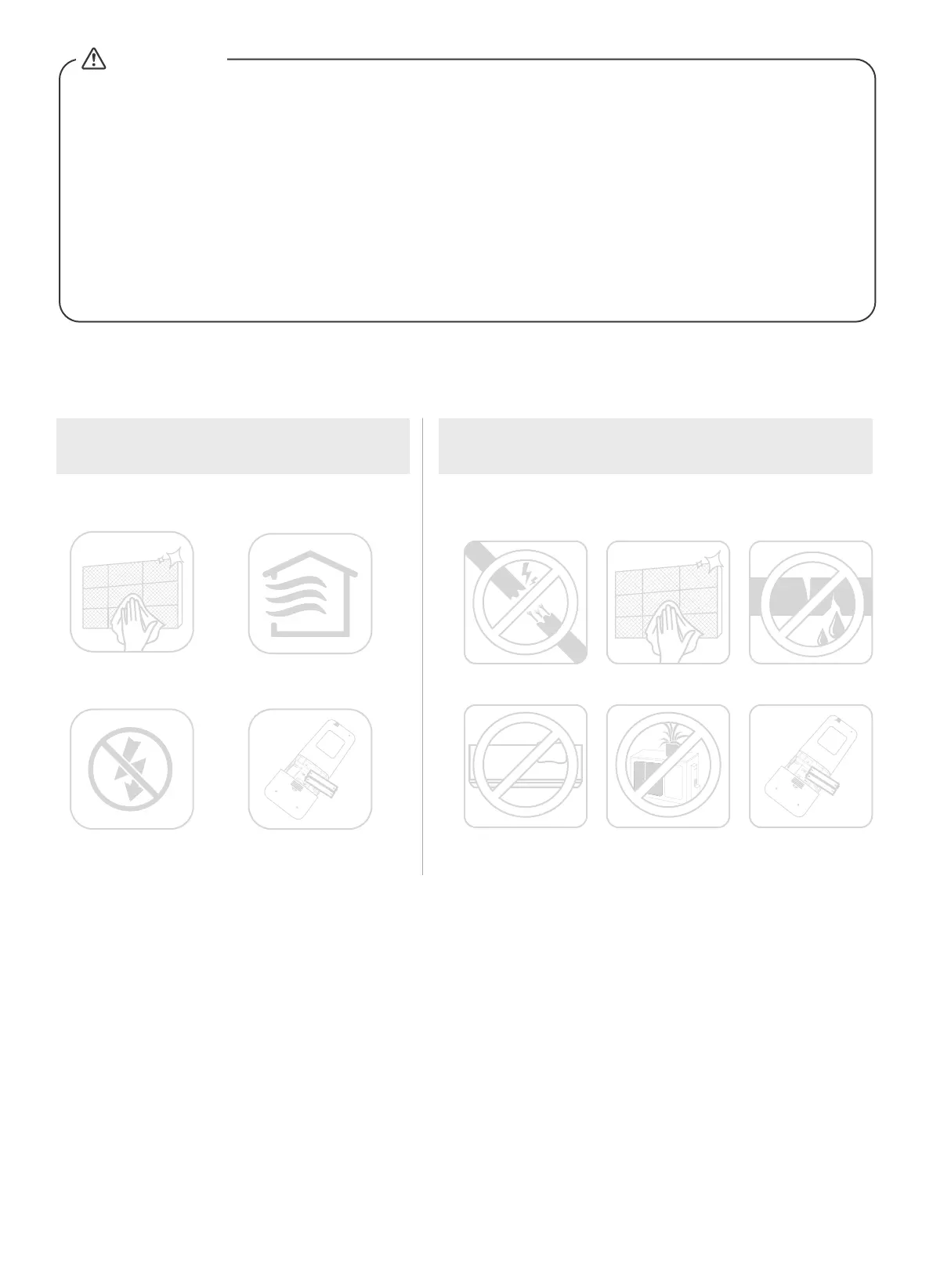 • Do not use water to clean the inside of the indoor unit. This can destroy