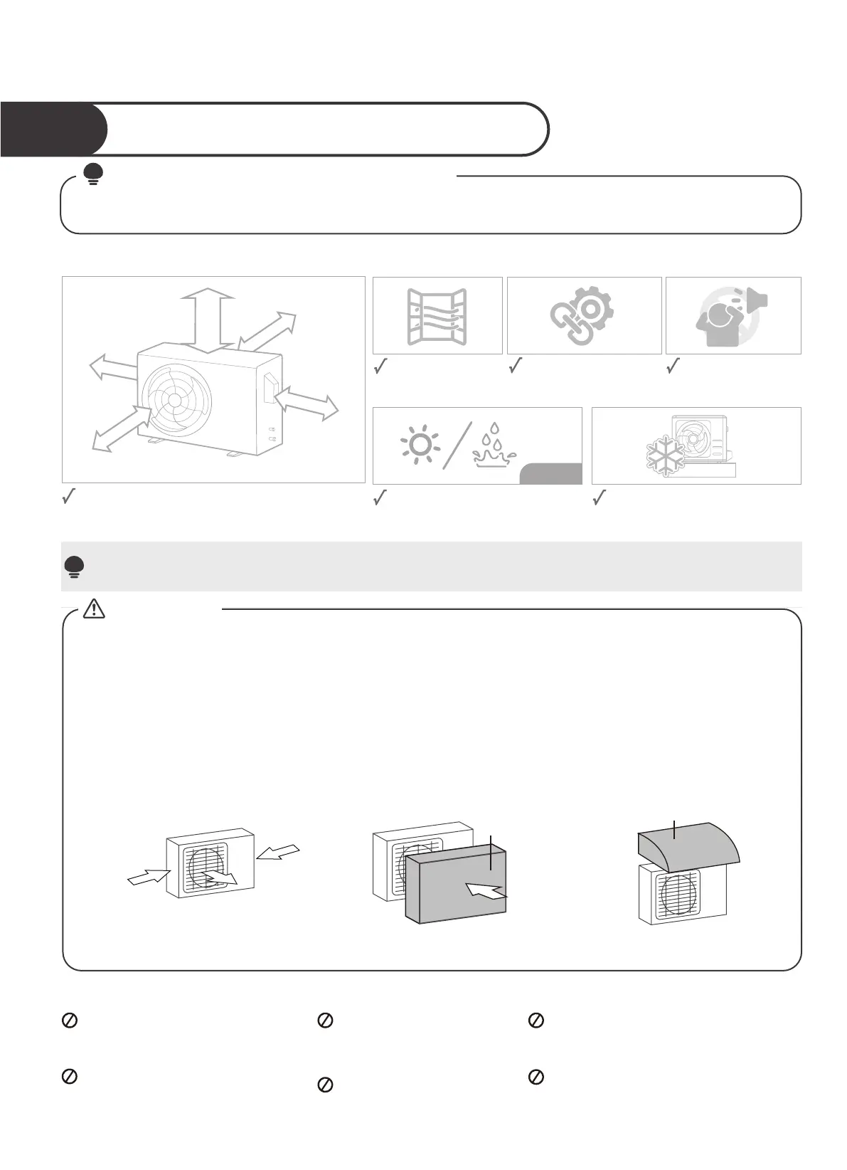 Before installing the outdoor unit, you must choose an appropriate location. The following are