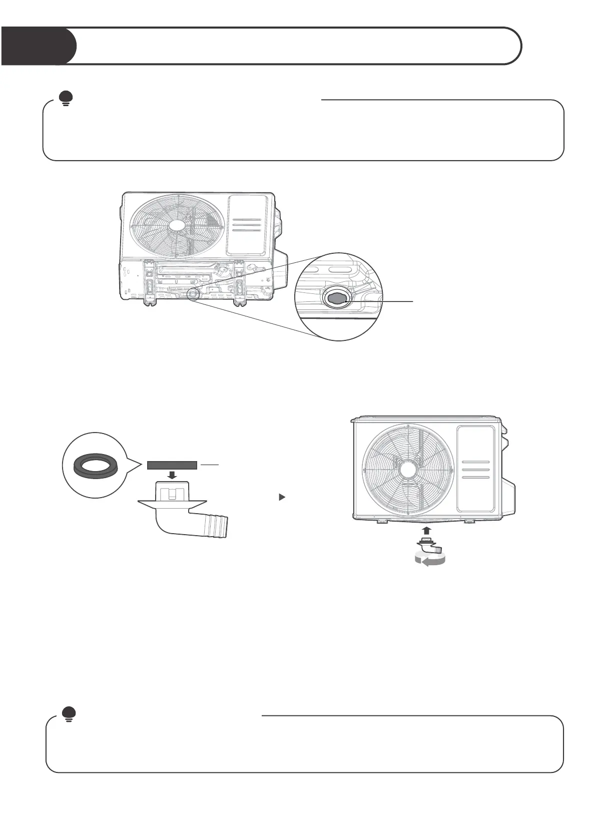 Before bolting the outdoor unit in place, you must install the drain joint at the bottom of the unit.
