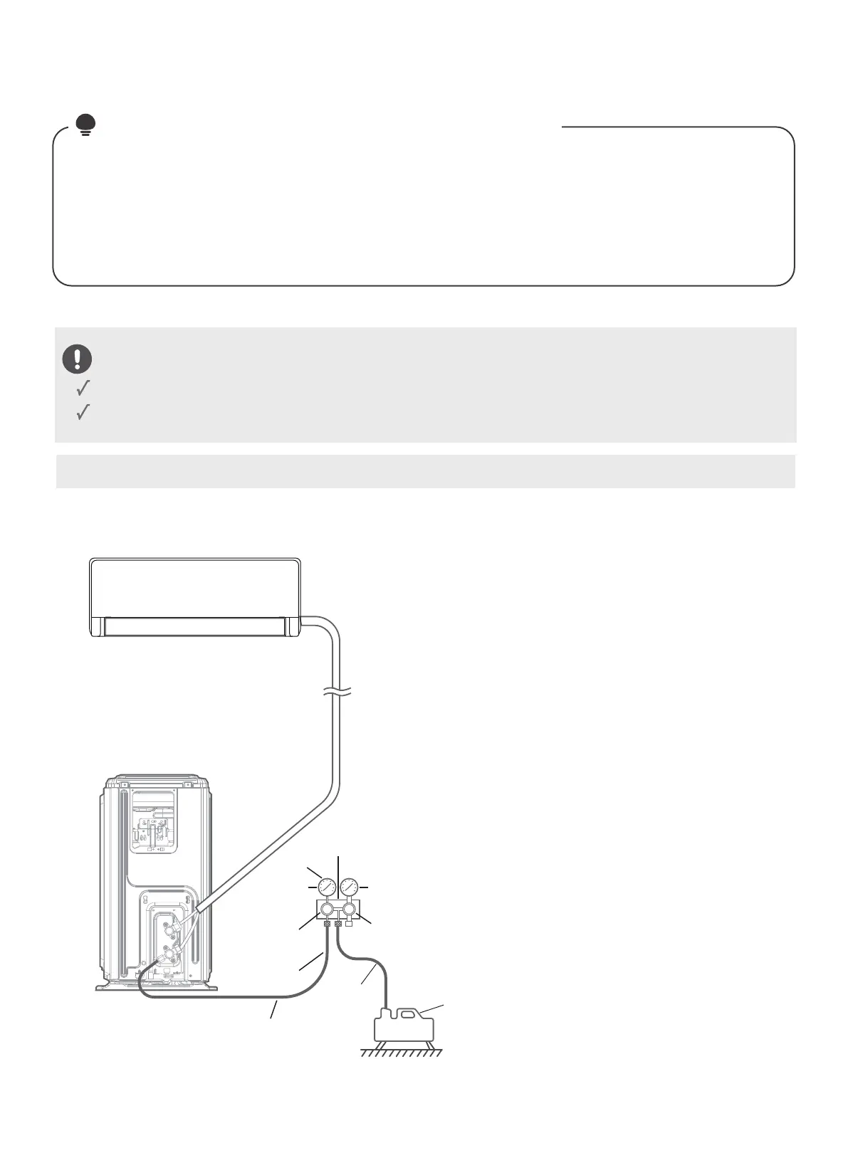 unit and pipes with vacuum pump. Use a vacuum pump and manifold gauge to evacuate the
