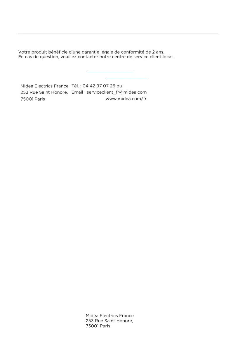 de la date de vente à l'utilisateur final. L’unité n’est pas destinée à un usage commercial.