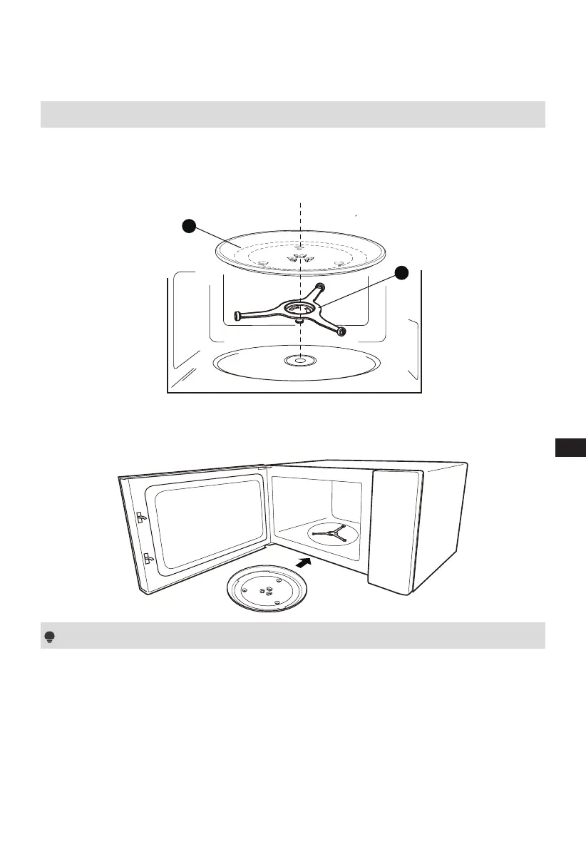 A főzőtér tisztítása és a forgótányér behelyezése a helyére. Új telepítés esetén győződjön meg arról, hogy