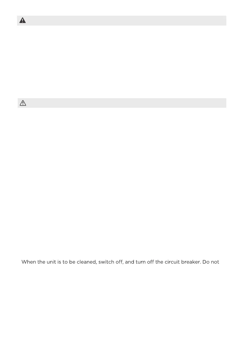 clean unit when power is on as it may cause fire and electric shock, it may cause an