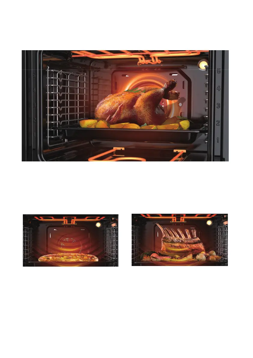 automatically comes on to improve air circulation within the oven and creates an even