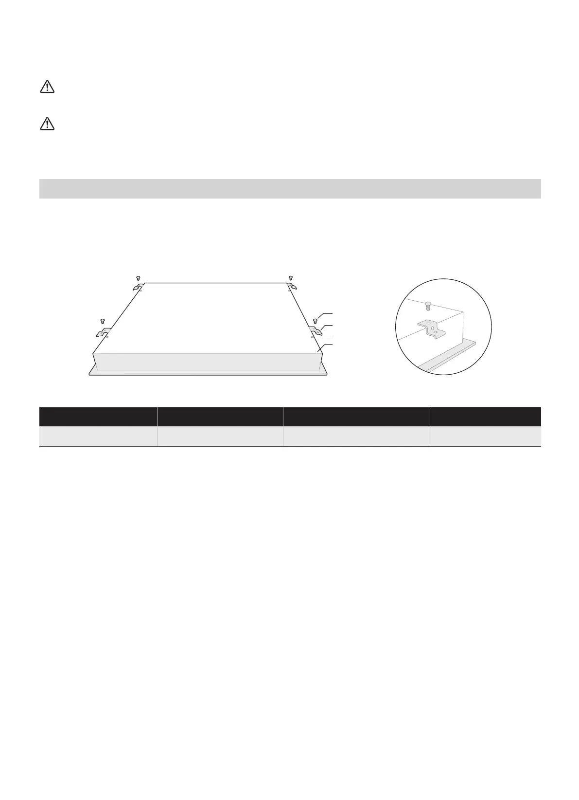 Fix the hob on the work surface by screw four brackets on the bottom of hob (see picture) after