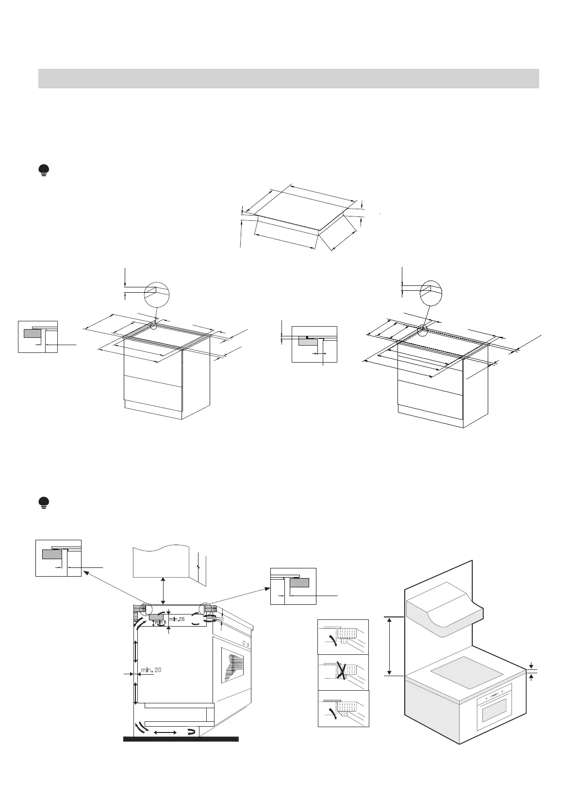 Note: The safety distance between the hotplate and the cupboard above the hotplate should be at