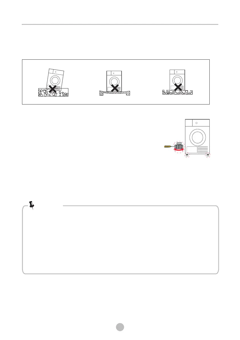 4. To keep vibration and noise within minimum level when the dryer is in use, it must