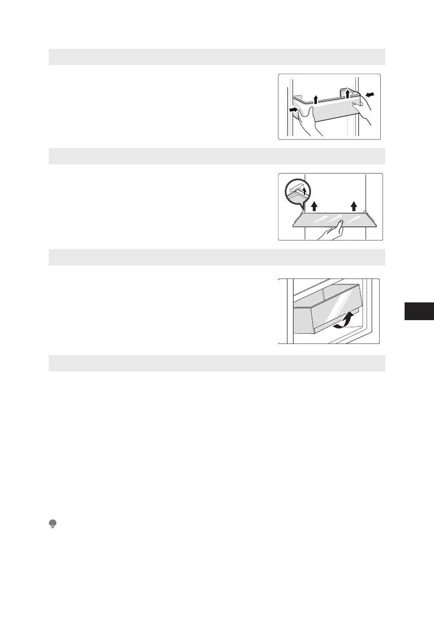 sklenené priečky, držiak na zeleninu, zásuvky mraziacej komory a podobné.