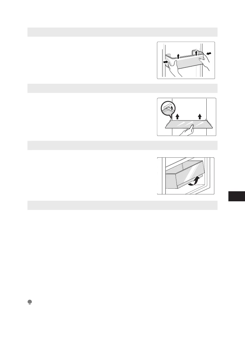 stikla starpsienas, dārzeņu turētāju, saldēšanas kameras atvilktnes utt., tad