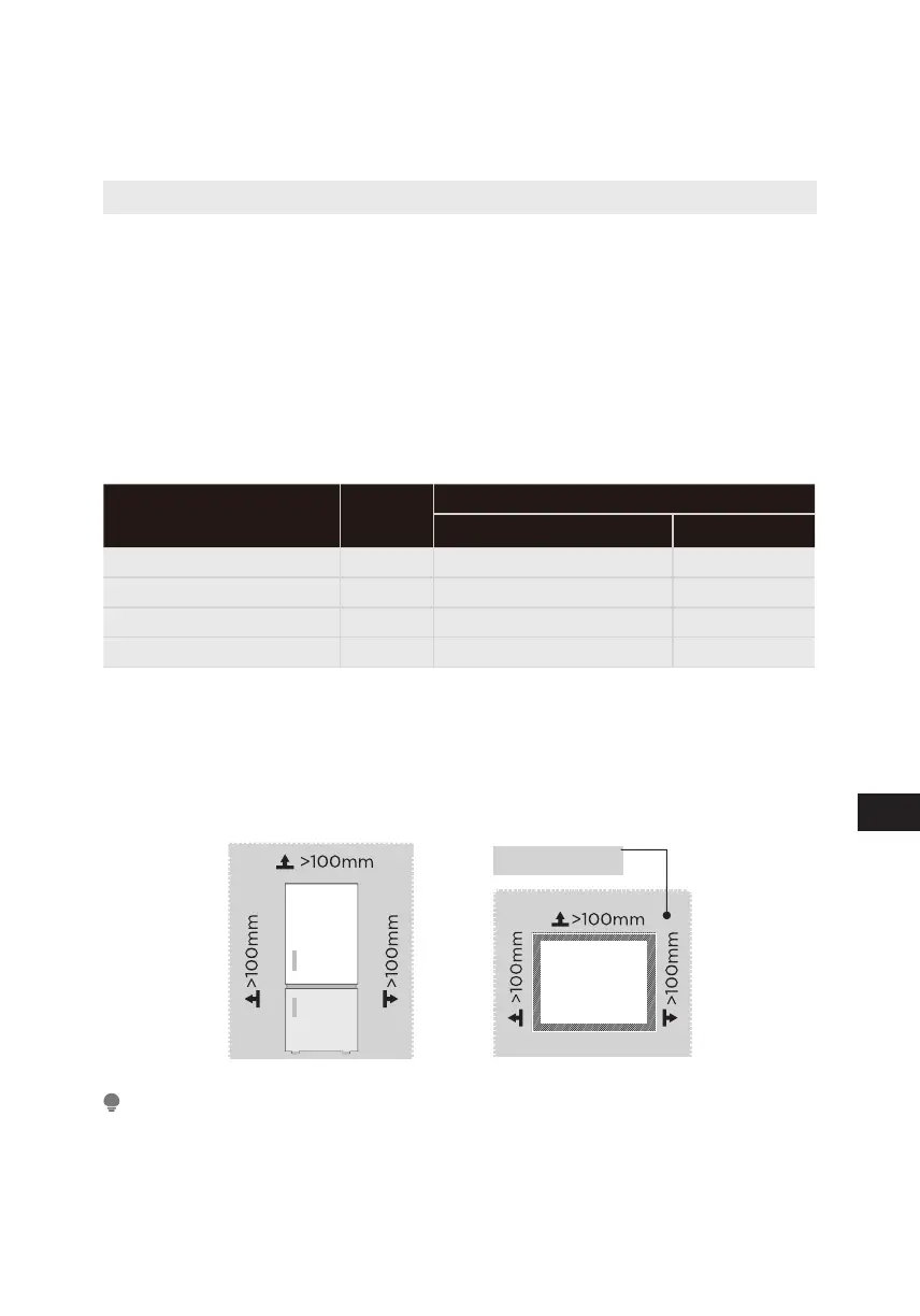 Оставите више од 100 мм слободног простора од сваког суседног зида