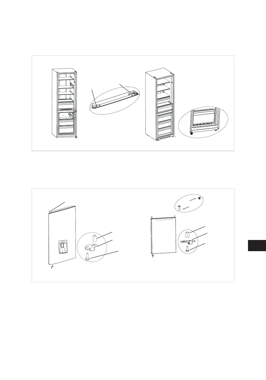 6. Stavite vrata za zamrzavanje na donju šarku i ugradite srednju šarku, kapice