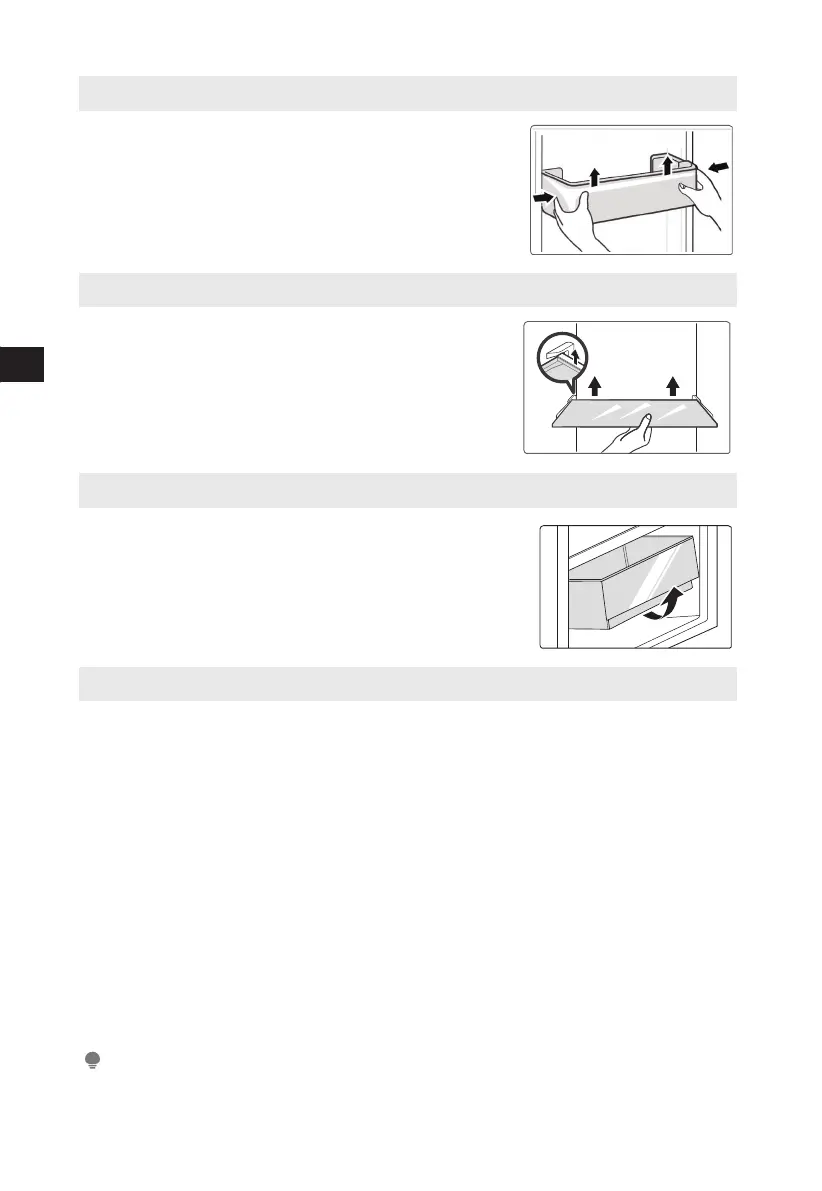 Antes de mover el frigoríco, extraiga todos los objetos al exterior, je las partes