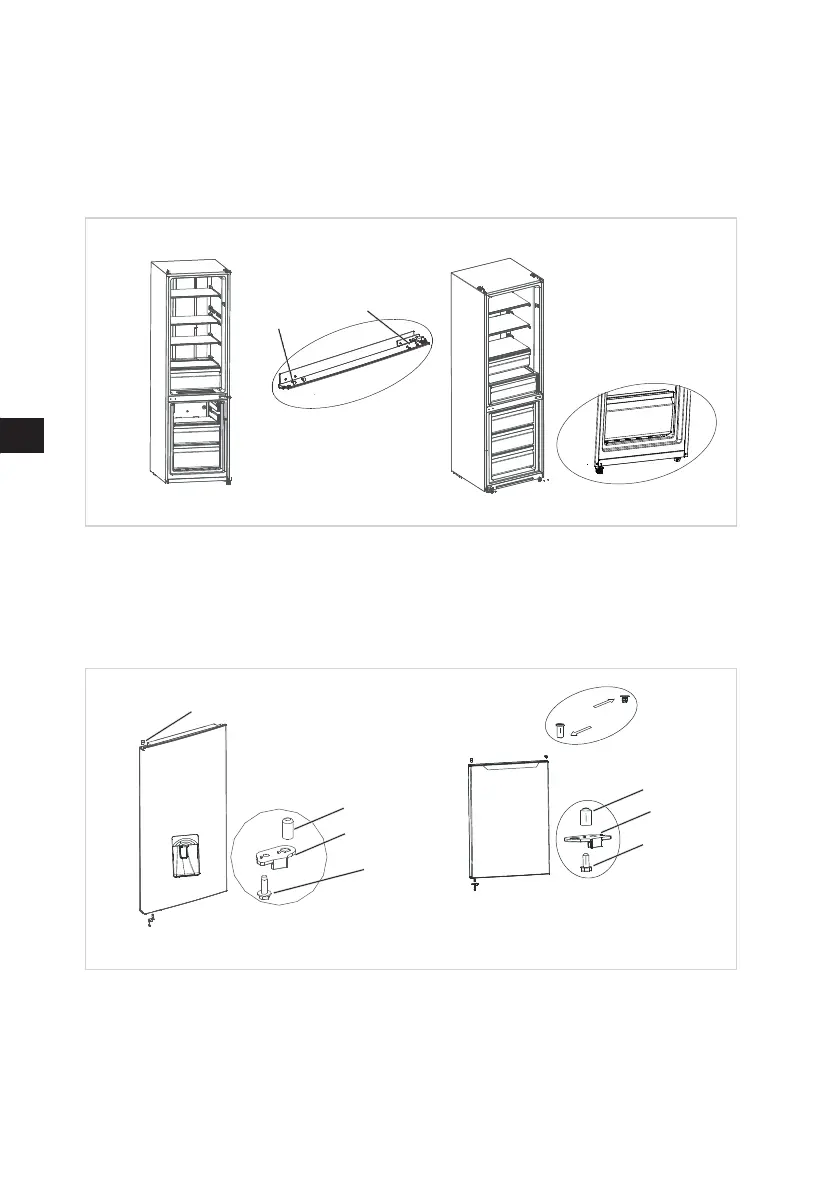 6. Τοποθετήστε την πόρτα κατάψυξης στον κάτω μεντεσέ και εγκαταστήστε τον μεσαίο