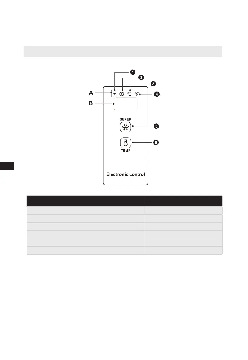 Kontrolka intensywnego zamrażania B. Obszar wyświetlania temperatury