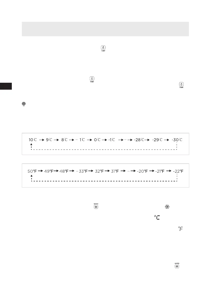 • Halten Sie die Temperatureinstelltaste “ ” für 3 Sekunden gedrückt, um zwischen
